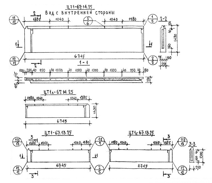 Серия 1.117-9    Панели групп ЦТ1 и ЦТ2  толщиной 250 мм.
