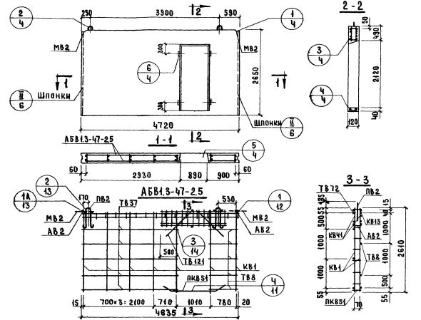 В1.3-47.27.12-2.5    Внутренние стеновые панели   (Серия 1.131-1).